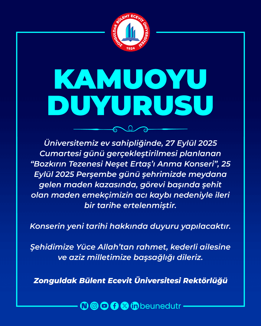 Zonguldak Bülent Ecevit Üniversitesi (ZBEÜ) ev sahipliğinde 27 Eylül Cumartesi günü yapılması planlanan “Bozkırın Tezenesi Neşet Ertaş’ı Anma Konseri” ileri…